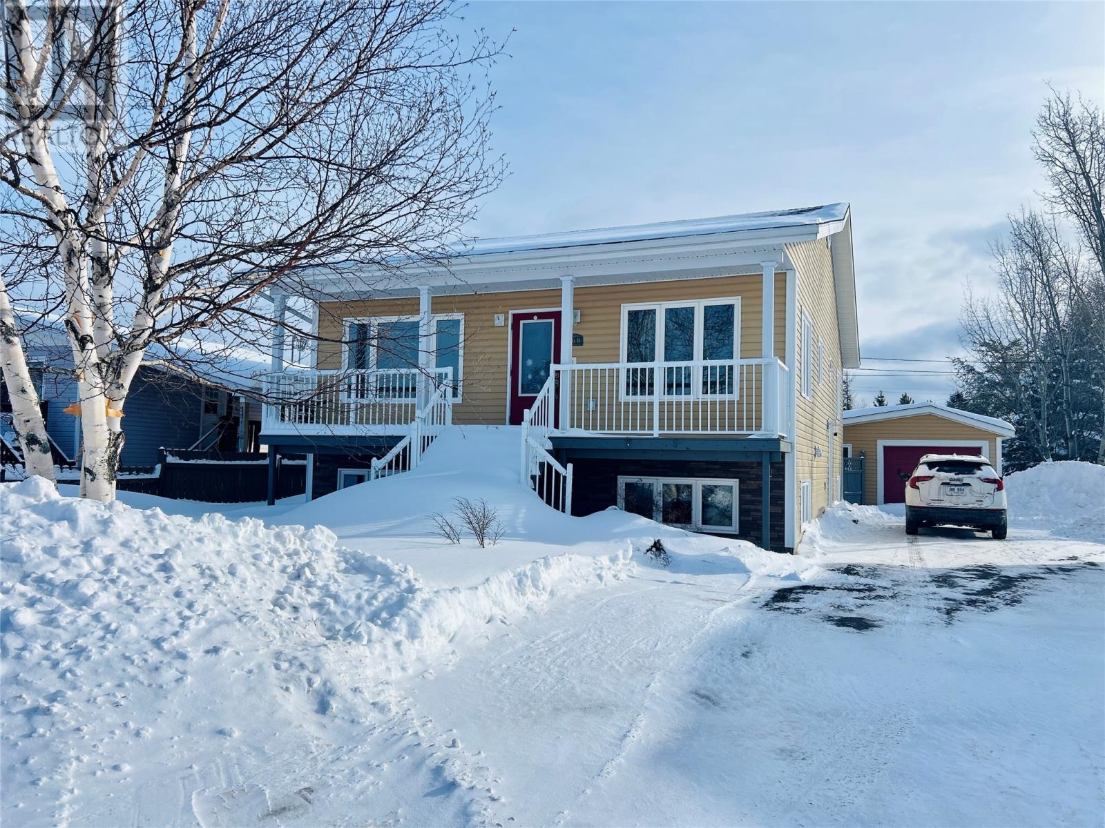 Located in a desired area of town, is this beautiful 3 bedroom side split home located in the town of Bishop's Falls. Main area features a foyer, open concept kitchen/dining and living area with birch cabinets, island to match, all new flooring, sink, countertop and backsplash, all appliances just 6 years old, main bathroom with large sliding door linen closet. The Primary bedroom features a patio door to a private 12x6 balcony, and tons of closet space. Bright a spacious 2nd bedroom completes the main floor. Basement features another full bathroom, laundry room, large family/games room with bar , third bedroom , also a bonus room which could use for a home based business or office. Home has an air/heat recovery system, new pressure treated deck on front with aluminum railing crown moldings throughout detached 20x16 wired garage, fully fenced at rear, landscaped, and double paved driveway. Don't miss out on this beautiful family home. (id:10648) |