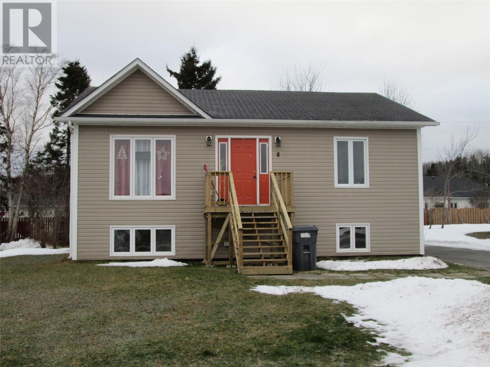 Welcome to 8 Butler Street in a great area of scenic Bishop's Falls . This 2 bedroom bungalow with a 2 bedroom basement apartment would be the perfect starter home with the apartment supplementing your mortgage payment or rent both units as a income rental property. Main level features a large foyer, open concept living room, dining room and kitchen, main bath and two bedrooms. Lower level of home consists of a large eat-in kitchen, bathroom, laundry and two bedrooms . Exterior is completed with vinyl windows, siding and doors, paved driveway and front and rear decks. No conveyance of any written signed offers prior to 3:00pm on February 16th,2026 and open for acceptance until 9:00PM February 16th,2026 as per Sellers Direction (id:10648)